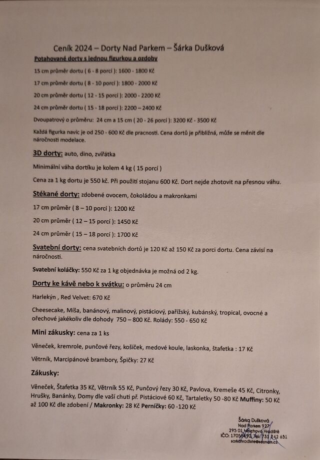 Předávání objednaných dortíku dle telefonické domluvy i mimo otevírací doby.